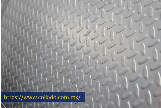 La lámina antiderrapante es un tipo de material es una hoja de lámina negra laminada en caliente con un grabado a manera de relieve.